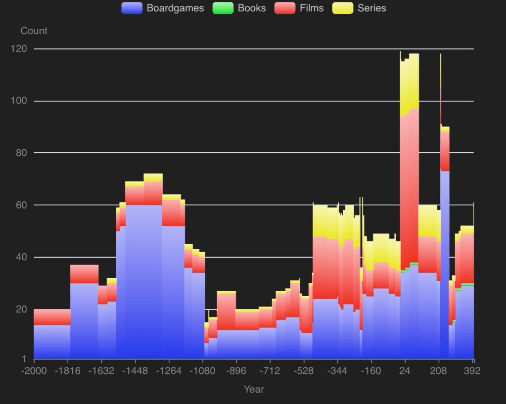 There’s a lot of possible data visualisations to make as well, like this fun chart of content set in times BC.
