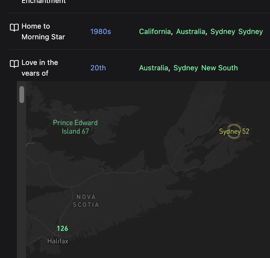 It’s a pretty fun experience to drop a few dots on a map, named from my own general knowledge, run some scripts, and find a bunch of movies and books suddenly emerge out of the woodwork. But it means gaps in my knowledge translate into gaps in the data, which is why I prefer using actual datasets where possible.