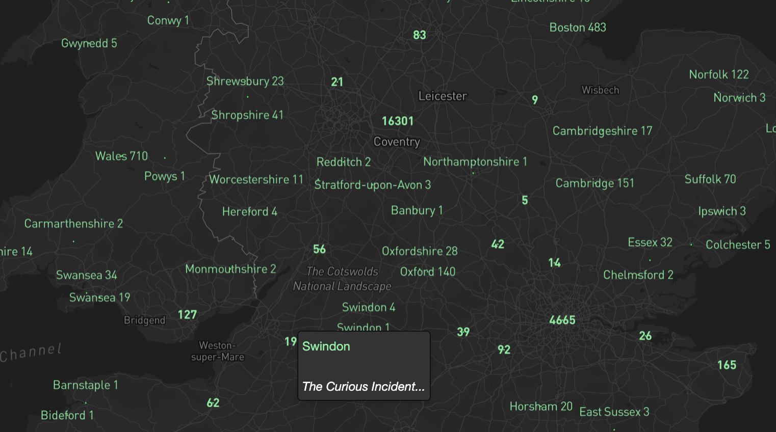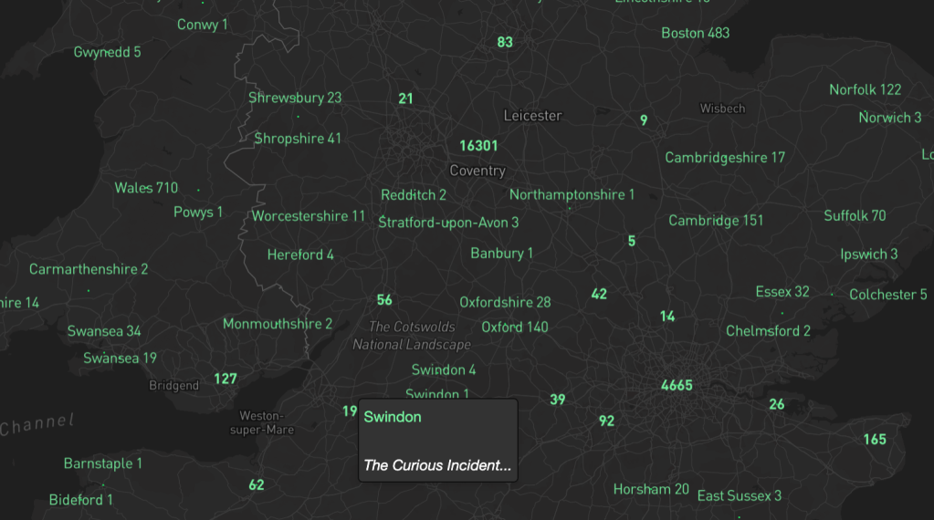 The Curious Incident of the Dog in the Night-time is definitely the only thing I have read or watched set in Swindon.