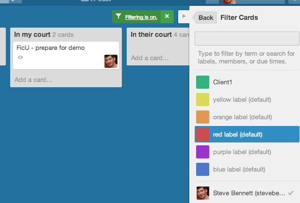 Are you working for a particular client today, and don’t want to see anything related to any other clients? Assign one label per client, then turn on the filter!